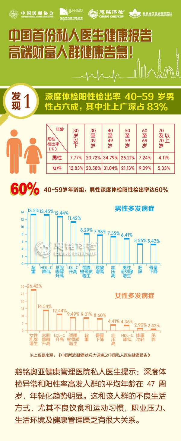 ?近日,由中國醫(yī)師協(xié)會HMO、 北京市健康保障協(xié)會聯(lián)合慈銘集團(tuán)、慈銘奧亞健康管理醫(yī)院共同發(fā)布了《中國城市健康狀況大調(diào)查之中國私人醫(yī)生健康報(bào)告》,這是中國健康管理行業(yè)發(fā)展中的首份